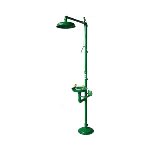 Hem göz yıkama duşu hem de vücut duşu ayrı ayrı el kumandalıdır. Kendi ayak tablasıyla yere bağlanmaya uygundur. Duş çanağı ABS olarak seçilebilir. Tüm boruları galvaniz boyalı imal edilmiştir