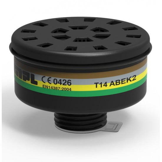Organik, inorganik ve asit gazları ve buharları ve amonyak ve türevleri, sınıf 1. T Serisi Filtreler, farklı koruma kombinasyonlarına sahip üniversal filtrelerdir. EN 148-1 bağlantılı tüm solunum koruma cihazlarıyla uyumludur.